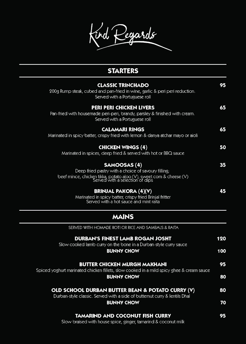 Kind Regards Menu